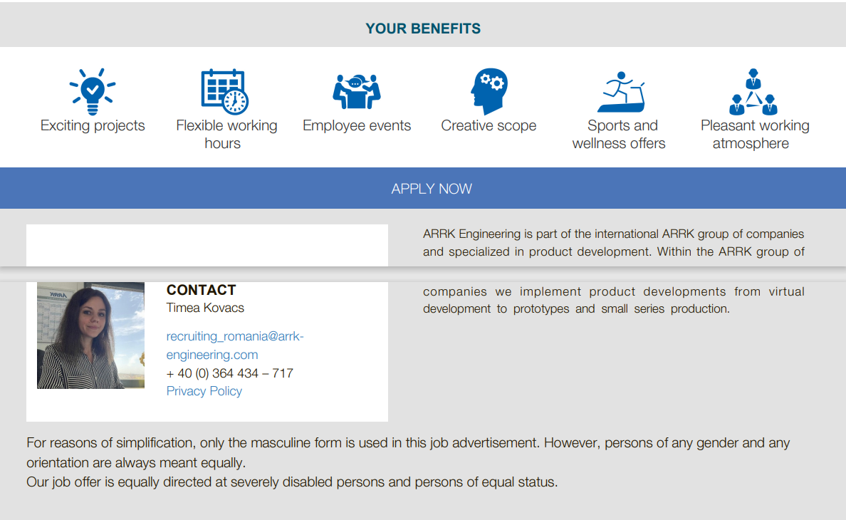 We would like to inform you that due to data protection, we can only accept your application via our online application platform. In order to be able to review your application, we would therefore ask you to apply on our careers page with just a few clicks: https://arrkeurope.onlyfy.jobs/job/xqjsd16k